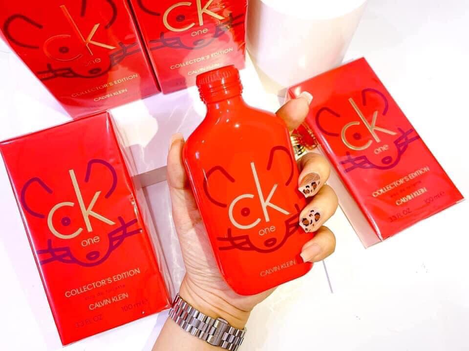 Phiên bản Calvin Klein CK One Collector’s Edition này cực kỳ hiếm đây các bạn. Là dòng nước hoa unisex, nhà Calvin Klein vừa "ra mắt" phiên bản CK One Chuột Đỏ này nhân dịp Tết Nguyên Đán 2020. Các tín đồ của CK thích sưu tập hàng độc lạ thì hãy sắm ngay em Chuột này nhé! Em Ck One Phiên bản giới hạn năm 2020 này mang tính biểu tượng cho màu sắc truyền thống của Trung Quốc. Chai màu đỏ của nó được trang trí với thiết kế đầu chuột màu vàng để kỷ niệm năm Canh Tý 2020.